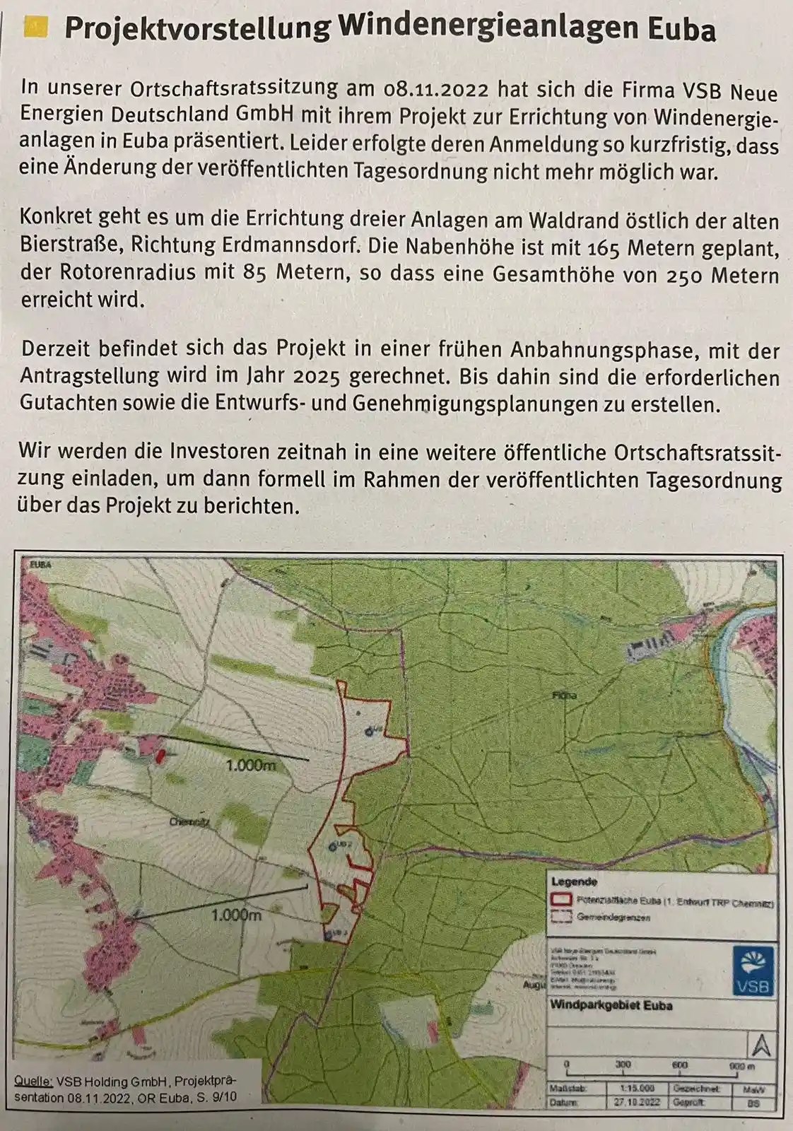 Auszug aus dem Eubaer Anzeiger über das Vorhaben